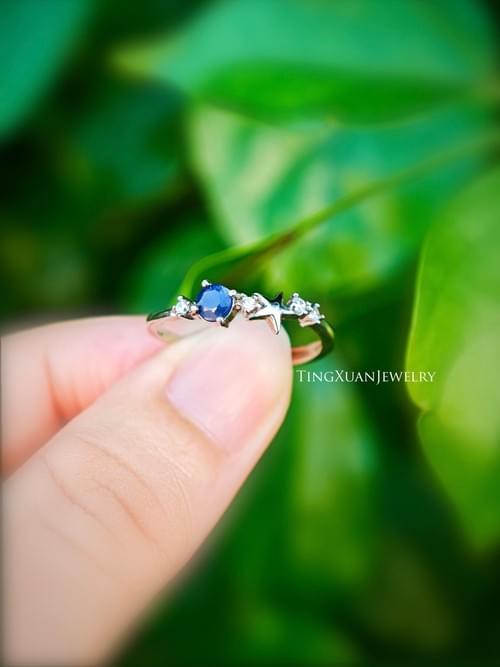 藍寶石是夜空中的主角,深邃且獨特,而那些銀色星星則是它最忠實的伴侶,一同守護著宇宙的秘密。佩戴這枚戒指的人,彷彿將星空的力量戴在手上,不僅能感受到內心的平靜,還能擁有追逐夢想的勇氣與堅定。